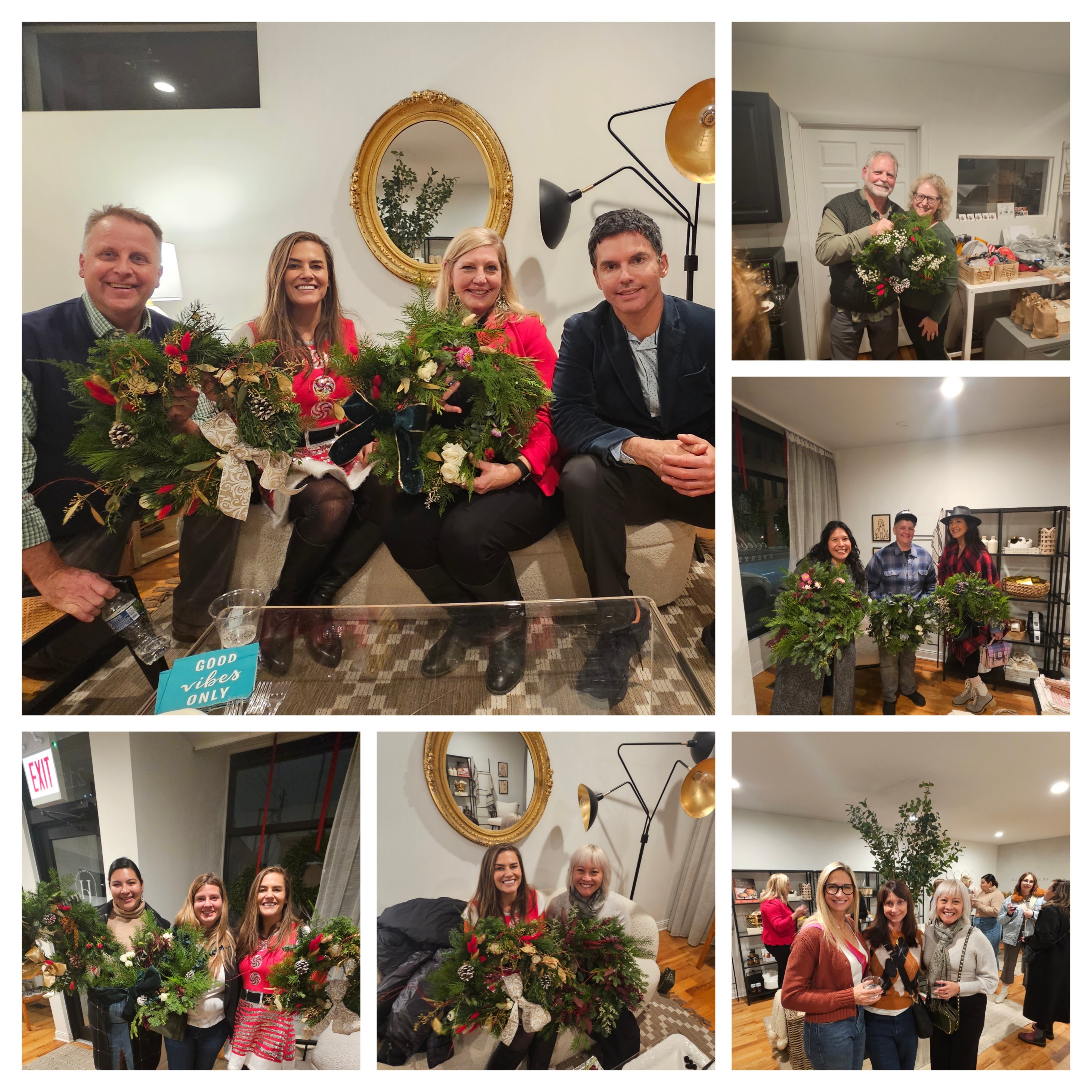 The highlight of the evening was, of course, the wreath-making activity. Guided by a talented local florist, Lee Lee Garden everyone had the chance to unleash their creativity and craft a unique holiday wreath to take home. The room buzzed with excitement as partners and clients selected from an array of lush greenery, vibrant ornaments, and festive ribbons to personalize their creations.